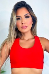 Red top with wide straps, a fitted fit, and stretchy fabric. Comfortable, versatile, and ideal for workouts.