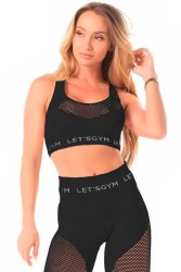 LET'SGYM sports bra in black, with an anatomical fit and a custom elastic waistband that ensures support and comfort. Made from high-compression fabric, it's ideal for high-performance workouts and everyday wear.