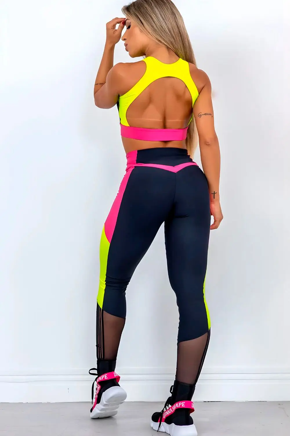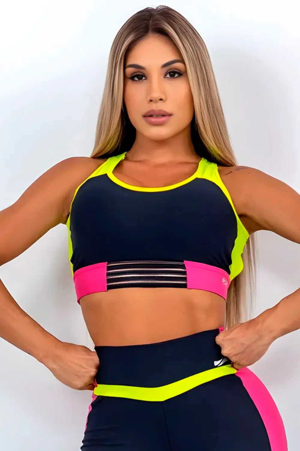 The Top Stamina Black combines technology, design, and personality. It offers support, comfort, and style. The structured cups ensure impeccable shaping, while the striped elastic front adds a sophisticated sporty touch. The pink and neon yellow cutouts enhance the bust and accentuate the shape with balance.