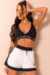 Black Fitness Top with thin straps, adjustable straps for a better fit, and elastic at the hem for added security.