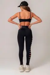 Black top with a straight cut and white silk print, thin straps, and minimalist design. Provides a comfortable fit, light support, and versatility for workouts or casual outfits.