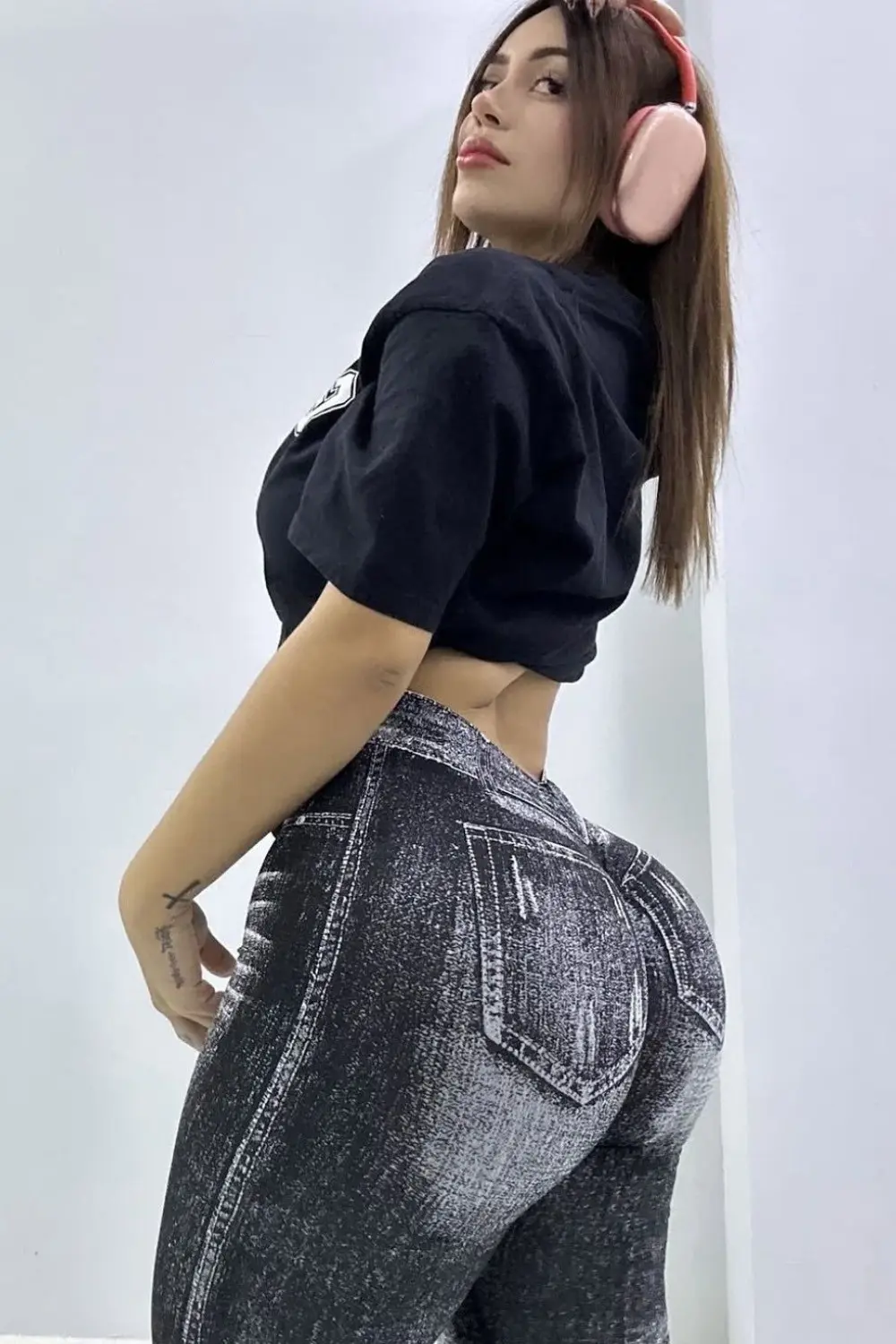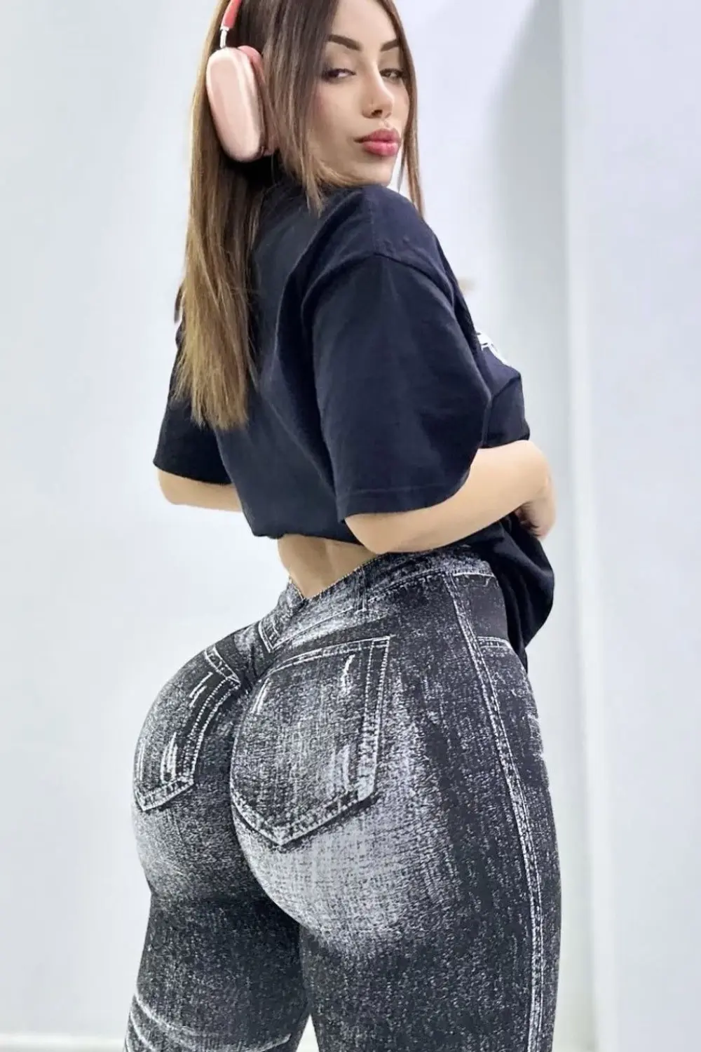 Curvy-flattering design with digital print that imitates worn jeans. Made from high-compression cirré fabric, it ensures a perfect fit with plenty of comfort and style. Ideal for workouts or casual outfits with attitude.