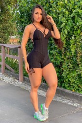 Very comfortable black brocade jumpsuit with a plunging neckline that enhances the bust and a design that shapes the body.